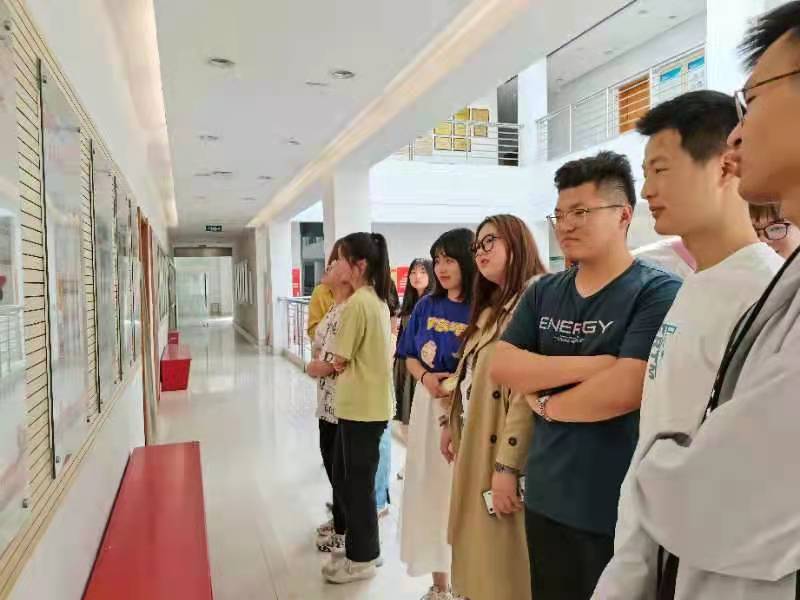 从1927年7月党的一大到2020年10月党的十九届五中全会,党的重要足迹一一展示,重要时期的重要意义一一表述,配以沉甸甸的历史照片,每一幅展板都是重要的教育载体。目前全院15个支部在校的近300名师生党员已组织现场学习,接受教育。每有老师同学走过,也不禁会驻足停留学习。