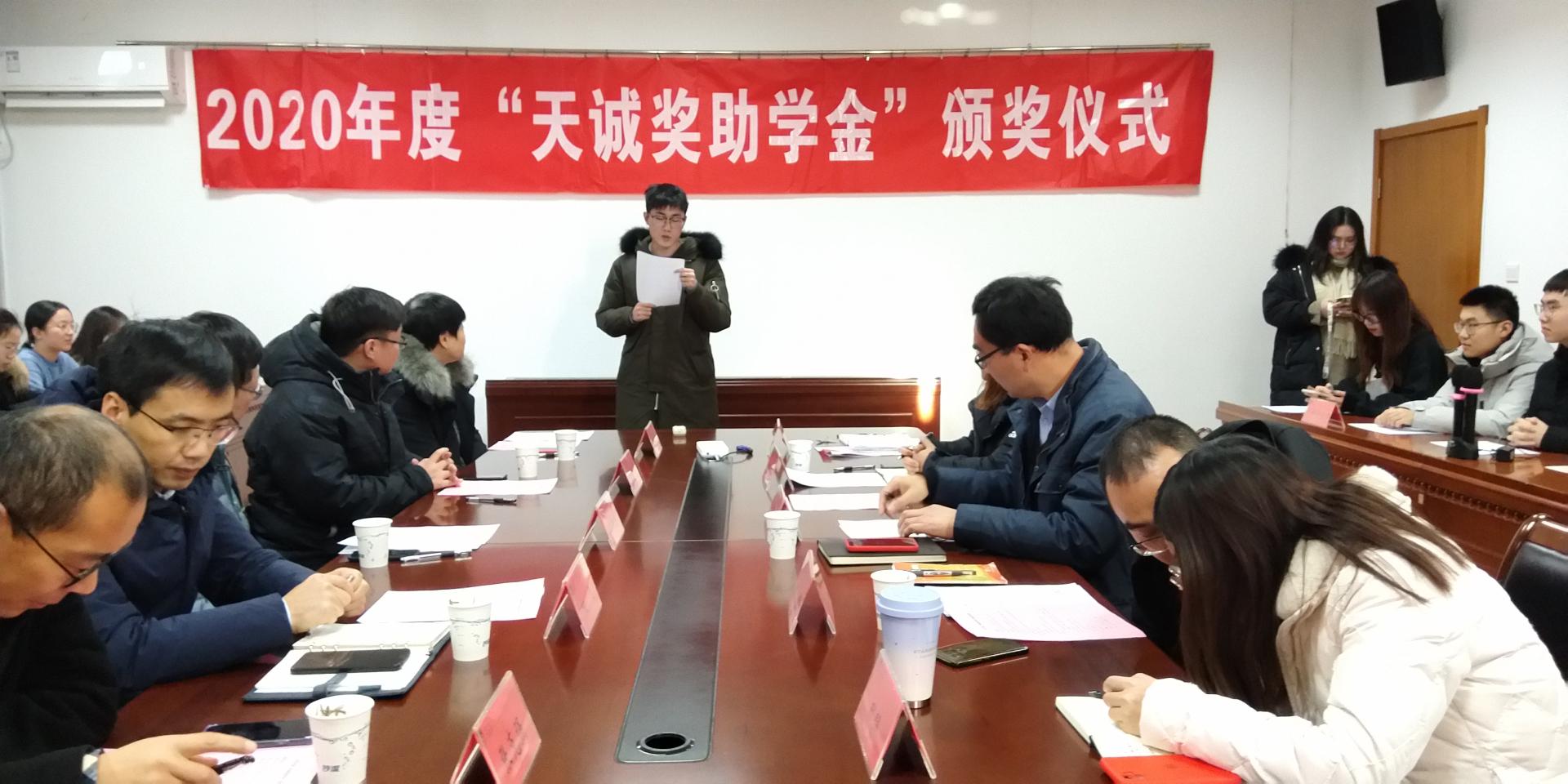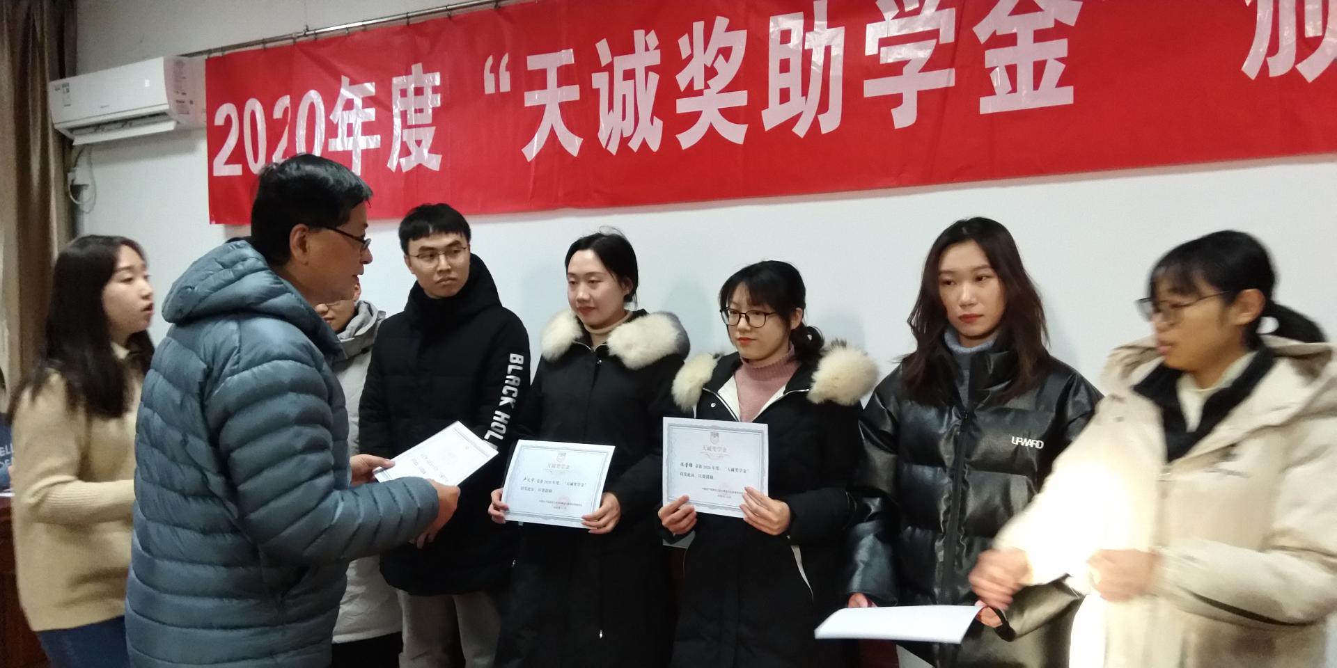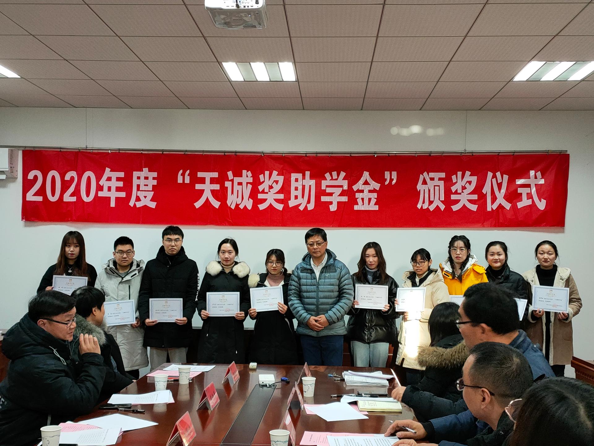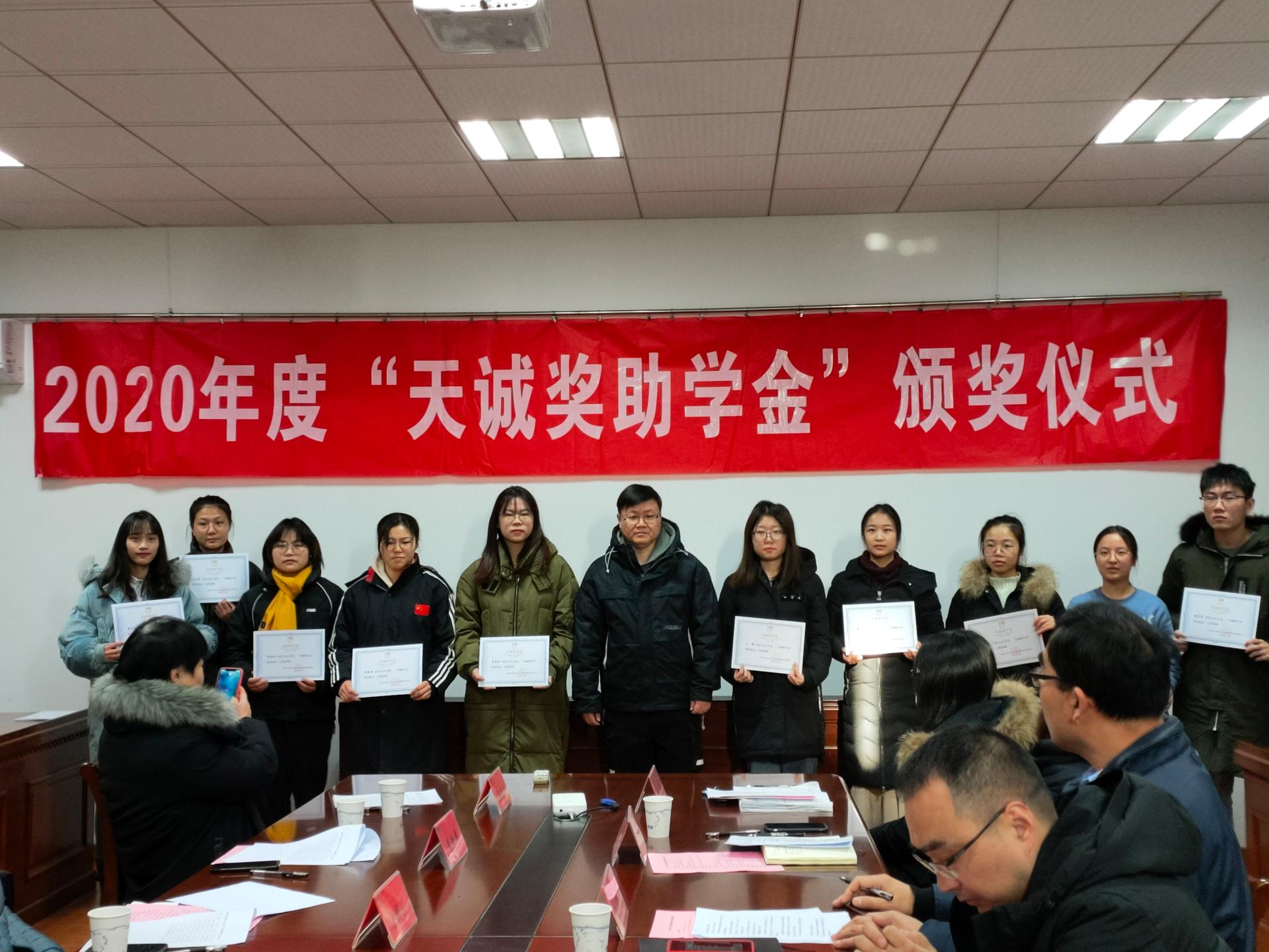 首先,岳克勤介绍出席来宾,并向德道天诚公司在PA视讯设立“天诚奖助学金”表示诚挚的感谢。副经理姚山季宣读了2020年度“天诚奖助学金”获奖名单。梁国庆、李传勇为获奖同学一一颁奖。