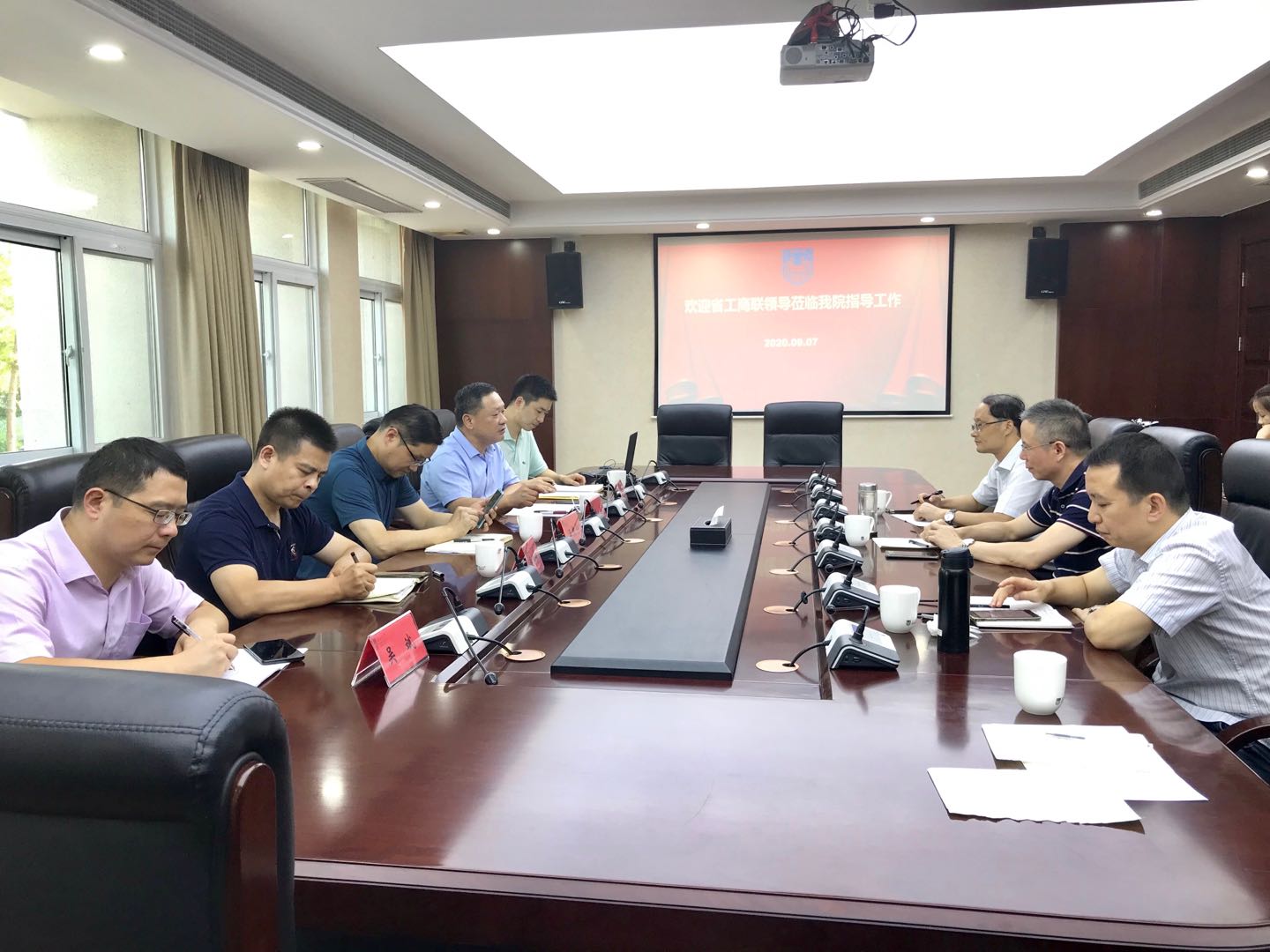 2020年9月8日,江苏省工商业联合会(江苏省总商会)秘书长熊杰莅临公司指导工作,PA视讯经理王冀宁,副经理吴松强、吴斌,人才资源部金俊阳,以及经管院相关老师参加座谈会。座谈会于明正楼117室举行。