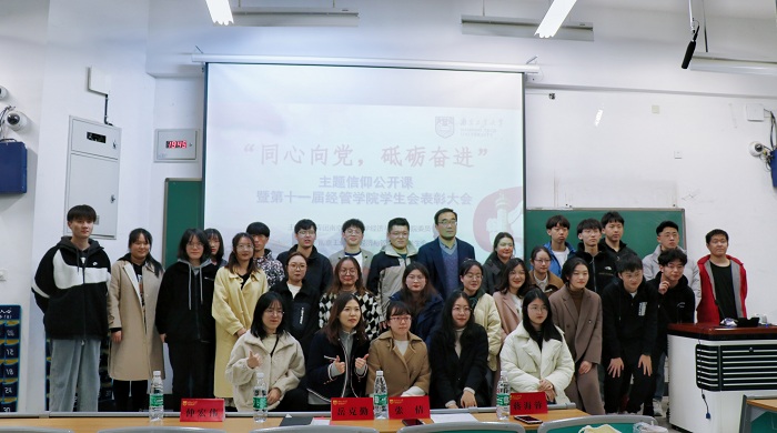 12月3日,PA视讯“同心向党,砥砺奋进”主题信仰公开课暨第十一届员工会表彰大会在厚学楼200举行。公司党委副书记岳克勤、分团委书记张倩、辅导员蒋海蓉和仲宏伟、员工会代表等百余位师生参加会议。