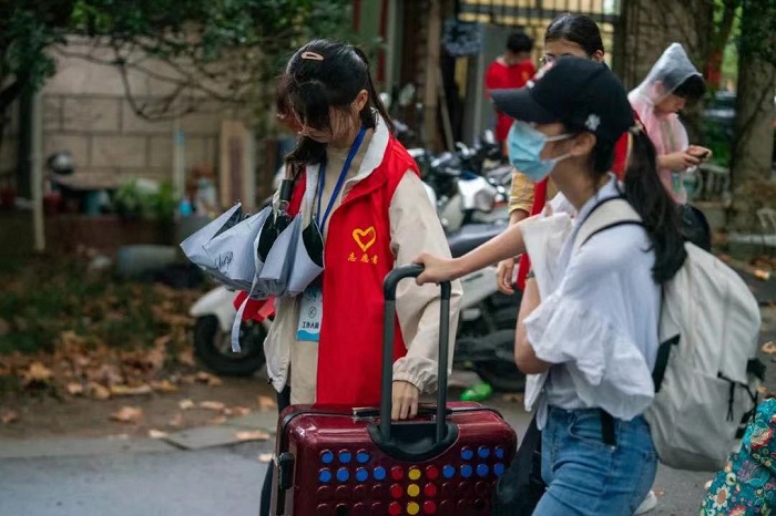 热情周到接待。报到日天气忽冷忽热,公司组织党员服务队、迎新志愿者一百多名分驻在各个点位,全力做好新生接待,新生一到,学长们立即迎接上去嘘寒问暖,搬运行李,引导路线、答疑解惑,用热情真情拥抱每一位新生学子。公司党委书记赵顺龙、经理王冀宁亲临现场,详细了解新生接待工作进展,及时跟进并现场指导本科生、研究生迎新工作,慰问奋战在一线的工作人员和志愿者。