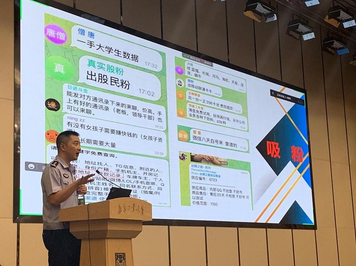 马科政委先后荣立个人三等功7次,荣获个人嘉奖9次,获评南京市公安局“侦查标兵”称号。他结合校园电信诈骗特征,发生在身边的案例,详细讲解员工电信诈骗的形势及特点,对电信网络诈骗的产业链组成架构进行解构分析,剖析典型案例,介绍当下最突出的电诈伎俩以及反诈方式,避免同学误入歧途、落入圈套。告诫同学们要时刻筑好心理防线、提高防范意识,保护好自身利益。