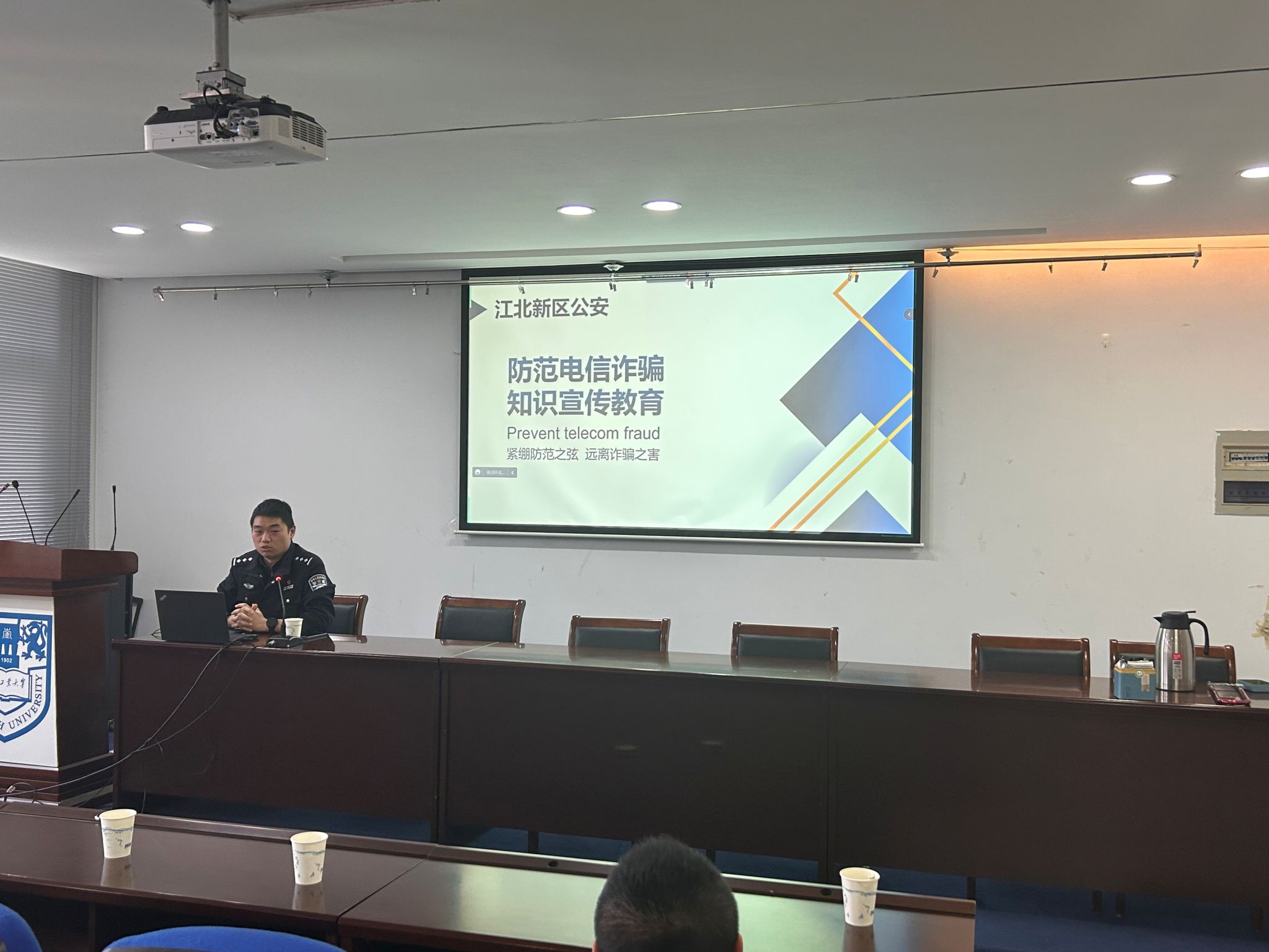 日下午,PA视讯与校保卫处联合主办“贯彻总体国家安全观,筑牢全民反诈防线”主题讲座。南京市公安局江北新区反恐大队长于淼警官、刑警支队反诈专办石鑫警官受邀带来精彩讲授。校保卫处副处长徐东、公司党委副书记岳克勤、公司辅导员、各班反电诈宣传员和主要班委代表参加讲座。