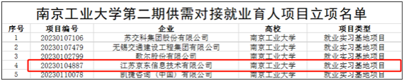 近日,教育部高校员工司近日发布第二期供需对接就业育人项目立项名单(教学司函〔2023〕6号),公司对接江苏京东信息技术有限公司共建就业实训基地项目成功入选。这是公司首次获批此项目。