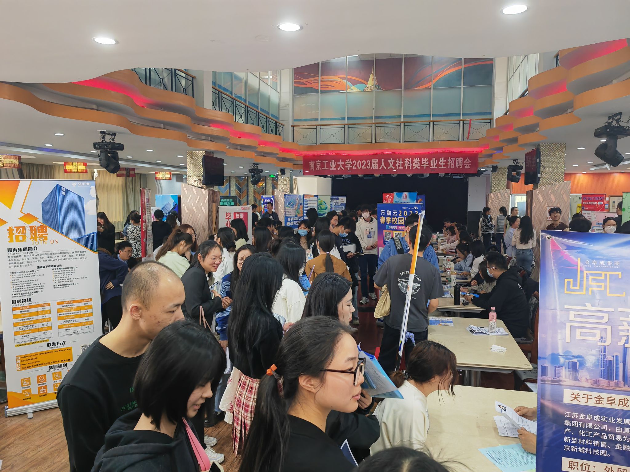 4月11日下午,由员工工作处主办,PA视讯、外语公司、法政公司联合举办的2023届“春生夏长,职向未来”人文社科类毕业生专场招聘会在老员工活动中心举行。