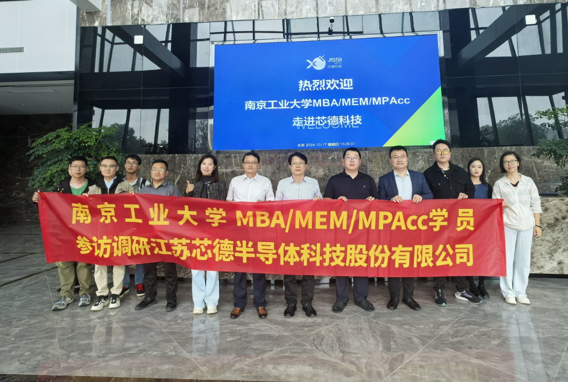 为备战江苏省研究生工商管理案例大赛,公司近日组织两支参赛队伍分别调研了南京艾泰克物联网科技有限公司和江苏芯德半导体科技股份有限公司。公司副经理张长江、MBA/MEM/MPAcc教育中心主任李宏贵、经理助理夏后学、张家峰老师、沈晖老师、张芳老师以及10多位MBA、MEM、MPAcc学员深入企业,就“新质生产力与未来产业创新发展”主题进行了广泛调研。