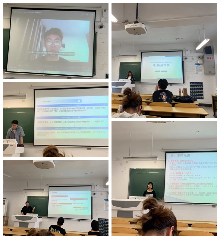 人资2024届毕业生周家瀚(现供职于学而思总部人事)和傅志豪(现供职于南京银行)分享了如何实现高质量就业;人资2023届毕业生徐鹏(现就读于伦敦国王公司)就出国留学做了经验介绍;人资2022届毕业生翁宋冰(本校硕士研究生)和人资2024届毕业生周满婷(中南财经政法大学社会工作专业硕士研究生)就考研规划做了交流。整个分享过程真诚,交流过程热烈,在校人资专业员工受益匪浅。