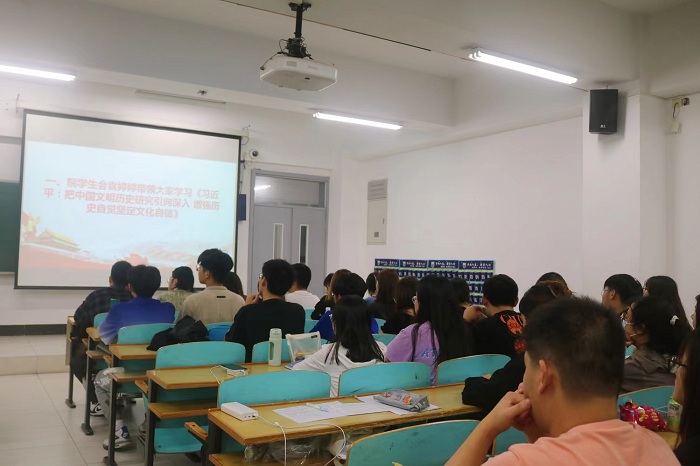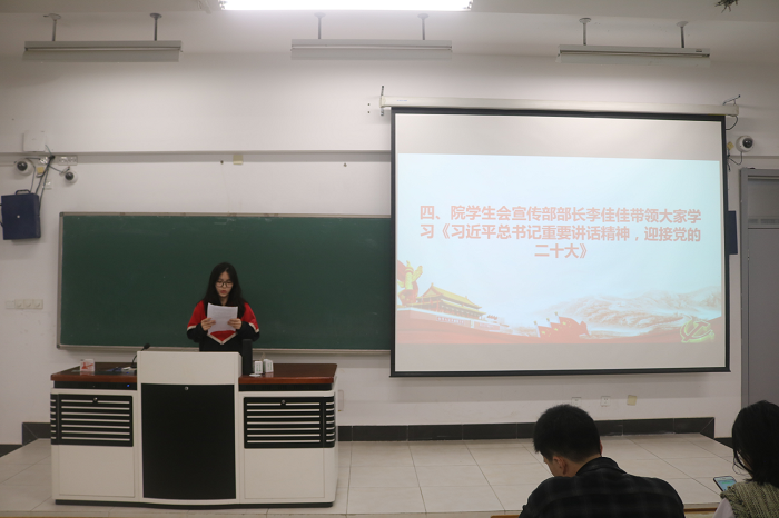 学习会上,院员工会代表袁婷婷带领大家学习《习近平:把中国文明历史研究引向深入 增强历史自觉坚定文化自信》,强调作为青年员工应当成为坚定文化自信的主力军与社会进步、国家发展的重要力量。综合事务部部长周子杨带领大家学习《习近平:新发展阶段贯彻新发展理念必然要求构建新发展格局》,帮助员工了解新发展理念、明确人生目标、鼓励坚持行动与目标一致性。宣传部部长李佳佳带领大家学习《习近平总书记重要讲话精神,迎接党的二十大》,深化学习“两个确立”、“两个维护”、“四个意识”、“四个自信”重要意义,号召同学们在思想武装和实际行动上为迎接党的二十大胜利召开做足充分准备。