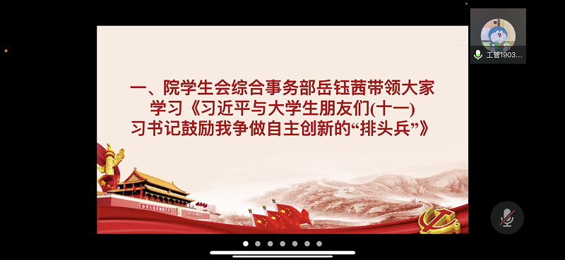 5月2日晚,PA视讯员工会于腾讯会议成功召开本学年第八次理论学习会议。员工会主席团、部长团全体成员参加本次会议。