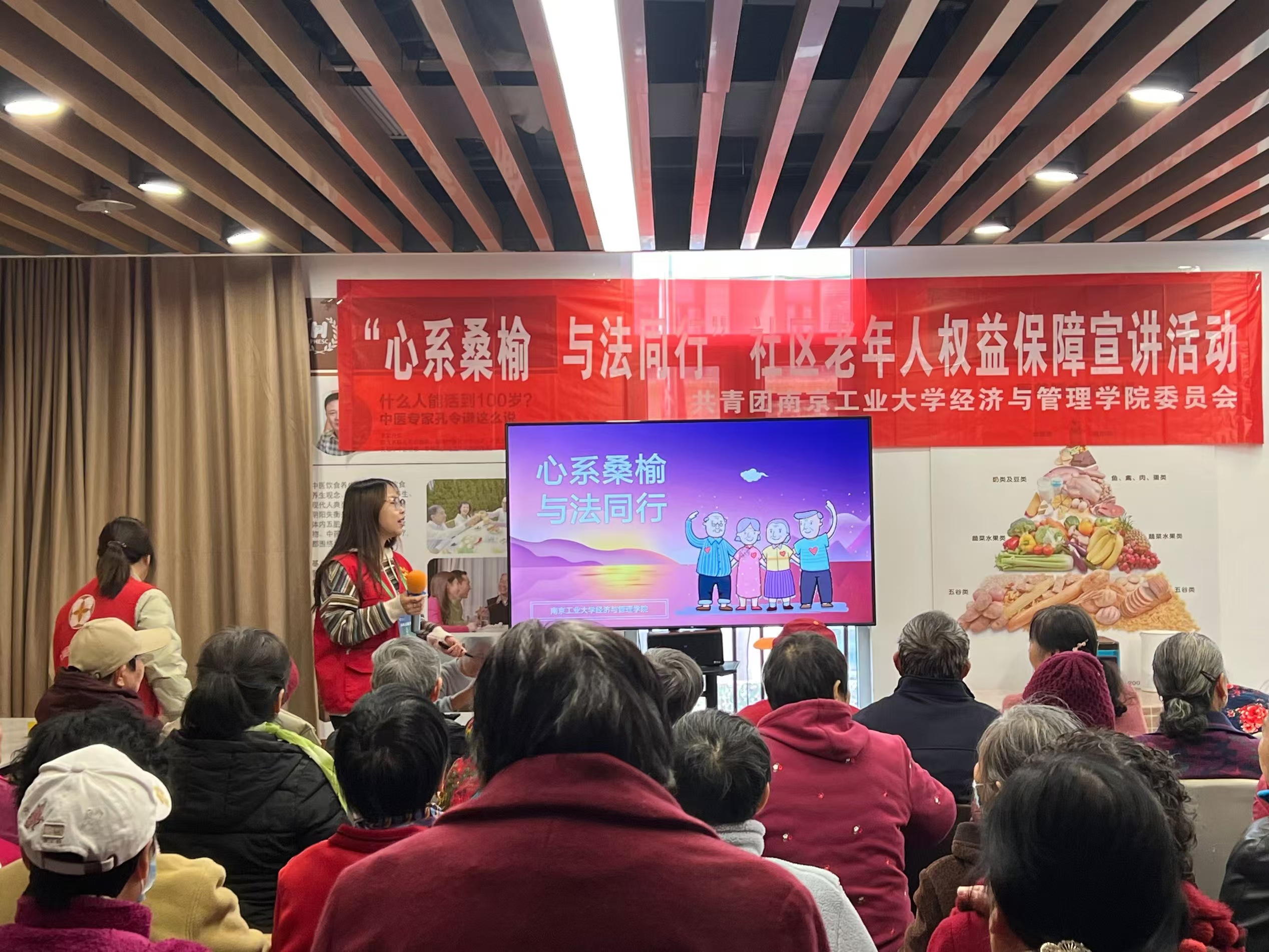 为响应国家关于加强老年人权益保护工作的号召,提高老年人自我保护意识与能力,11月27日下午,PA视讯团委组织知产2401团支部于南京市吉庆社区党群服务中心开展“心系桑榆,与法同行”社区老年人权益保护宣讲活动。