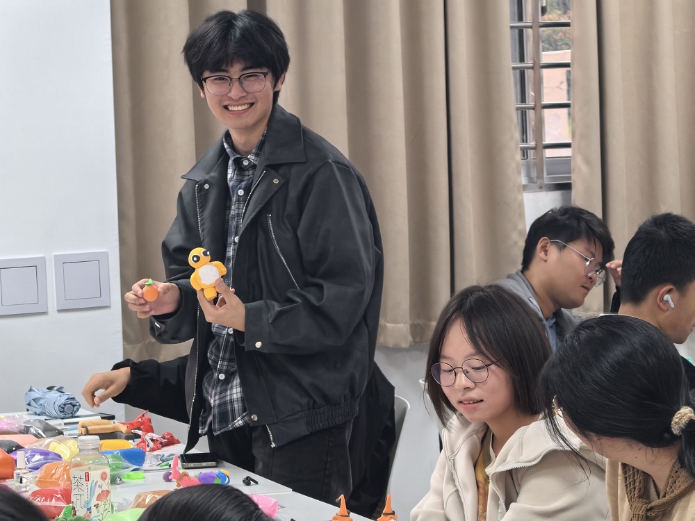 现场座无虚席,同学们热情高涨,在这方小小的黏土天地里用心灵感受美好,用双手赋予黏土生命与情感,舒缓内心的压力。每一块黏土都承载着喜怒哀乐;每一份作品都是心灵的独特映照。活动在轻松愉快的氛围中圆满结束。
