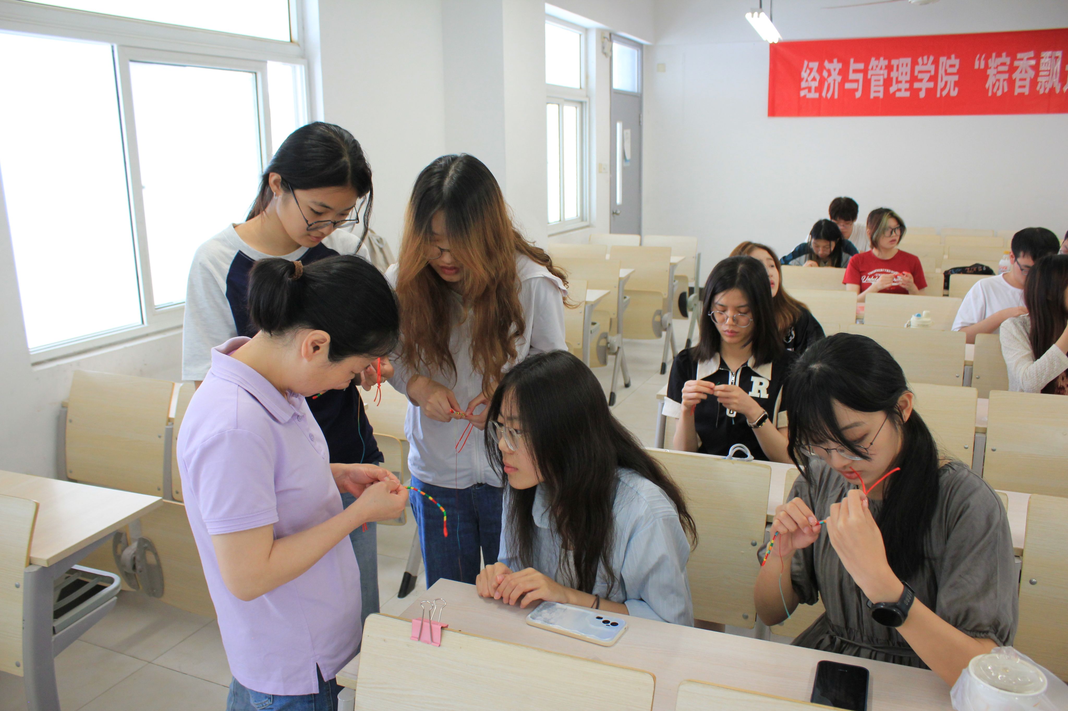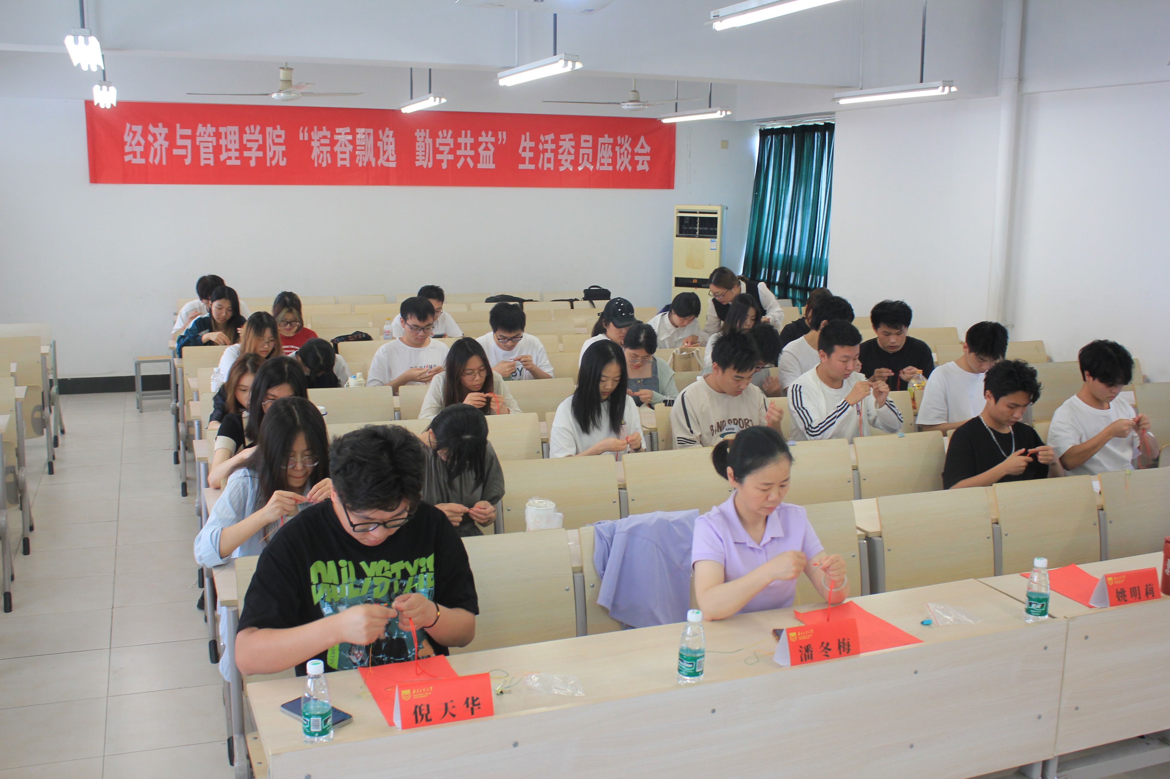 会上,后勤保障部老师对同学们提出的反馈问题进行了专业解答,加深了同学们对公司后勤保障工作的理解。随后,师生们共同编织五色丝线手绳,彼此表达对端午节的祝福。