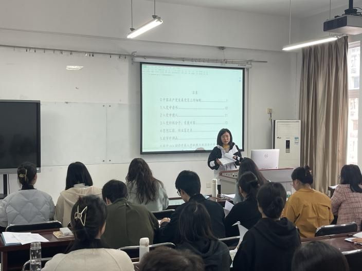 随后,组织员周洋老师围绕“申请入党、入党积极分子的确定和培养教育、发展对象的确定和考察、预备党员的接收、预备党员的教育考察和转正”五个发展党员工作流程进行详细的解读,并就相关材料的规范化填写进行了具体指导。最后就相关问题进行了互动交流。