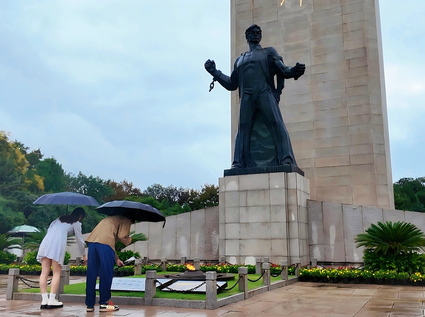 活动当日,全体成员肃穆地站立于雨花台烈士就义群雕前,以瞻仰群雕、敬献鲜花的方式,深刻体悟先烈们坚定的理想信念和英勇无畏的革命精神。随后,有序行至雨花台烈士纪念碑前,列队肃立,默哀致敬,向为革命事业英勇献身的先烈们表达最深的敬意。