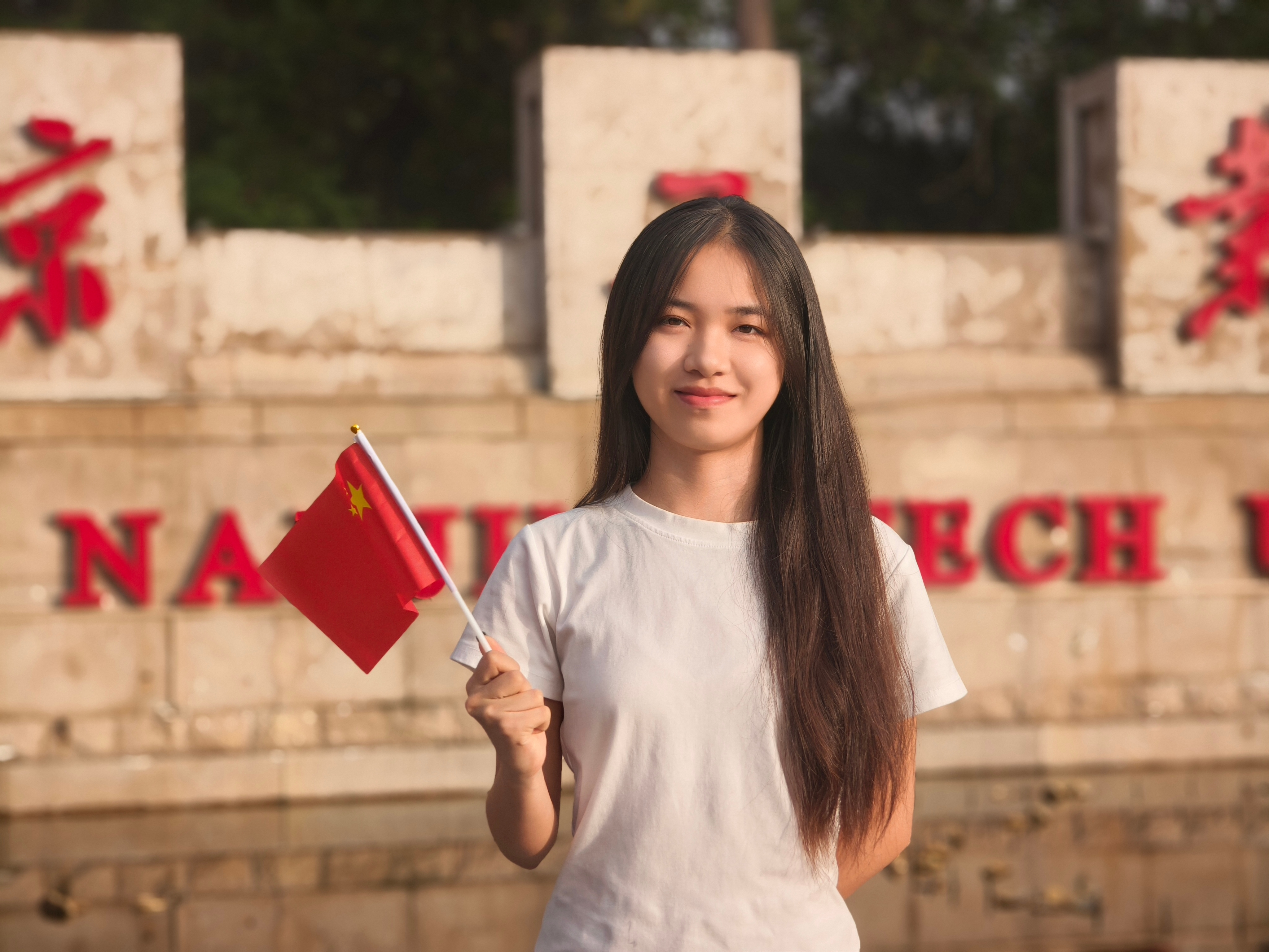 国贸2402邓嘉睿:与国旗同框,心中满是骄傲与归属感,愿祖国繁荣昌盛,这抹红永远鲜艳。