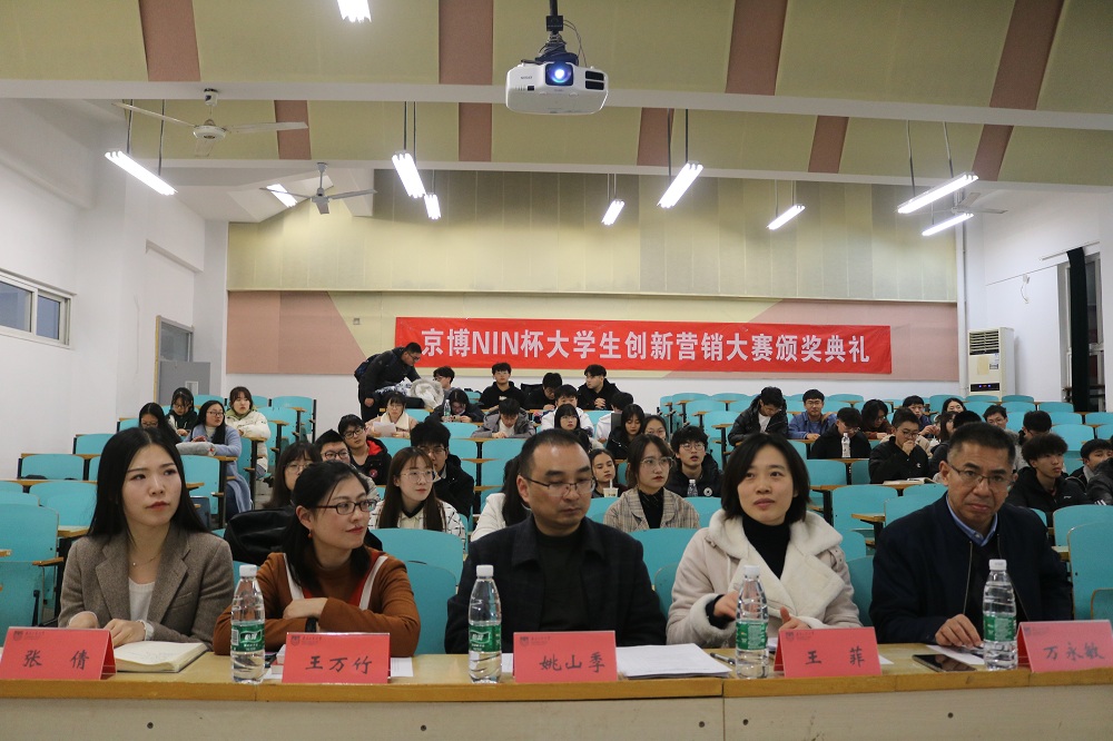 122日晚,PA视讯举办的京博N1N杯老员工创新营销大赛南工大赛区实战营销总结答辩及颁奖典礼于厚学楼302圆满落幕。山东康乃尔材料科技有限公司总经理史镇格,滨州京博职业中等专业公司副董事长付宝强,山东京博控股集团有限公司南京创新中心副总经理张瀚玮、中级合作管理师王思义,PA视讯平台教育发展基金会秘书长万永敏,校团委副书记王菲,公司副经理姚山季、市场营销系系主任王万竹、院团委书记张倩等领导嘉宾出席了仪式。