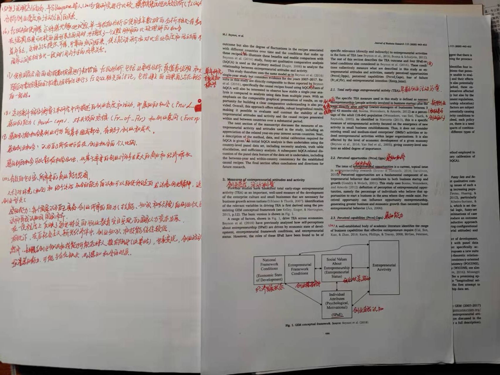 疫情期间,王鹏程阅读了《博雅光华》和《管理学问卷调查方法》两本书;在中国大学慕课平台上提前学习统计学课程,及时整理自己的纸质笔记;利用各种网络资源学习python和结构方程模型的相关知识,不断拼凑尝试运行代码……
