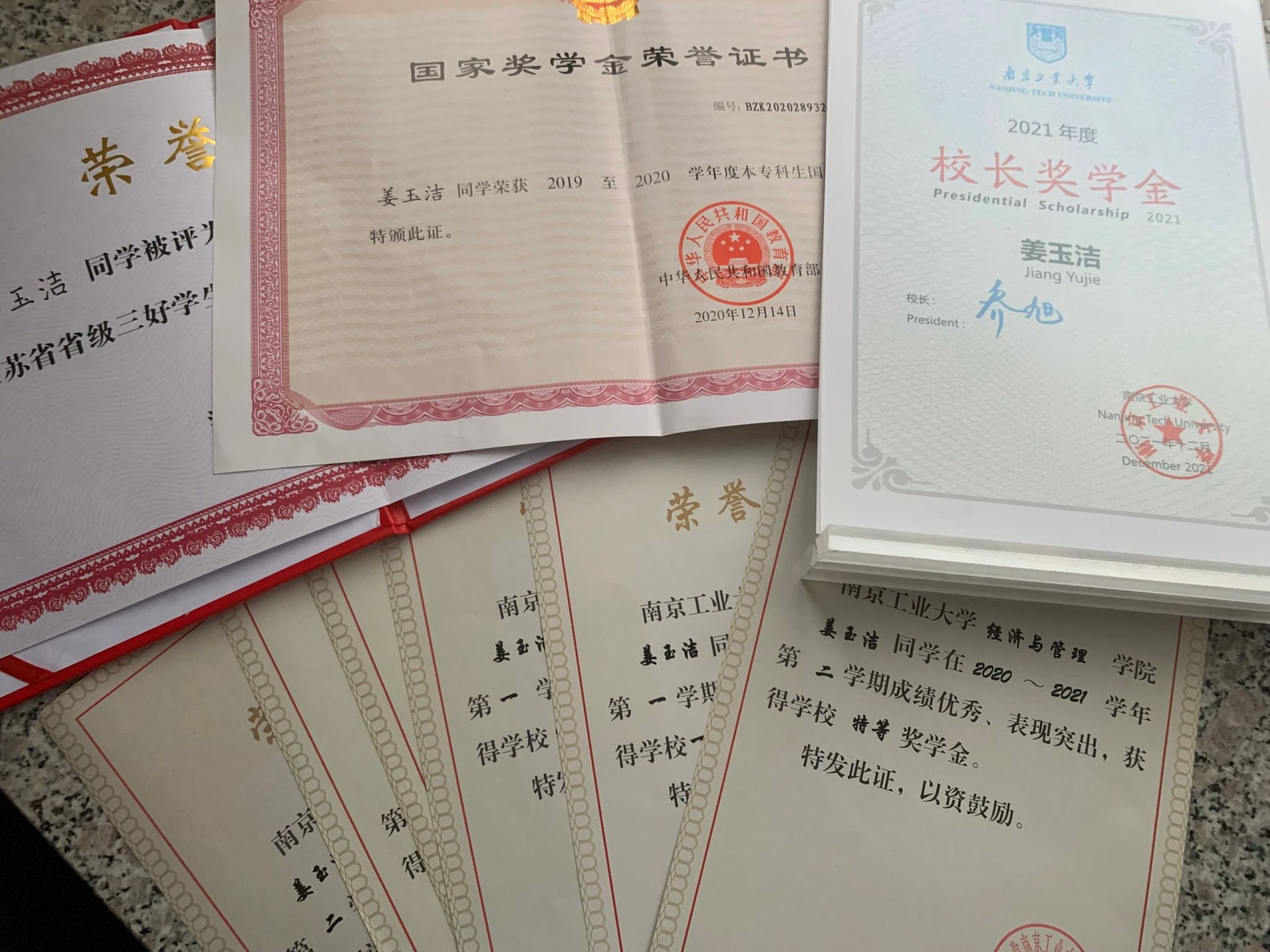 时光从不语,却在过程中给到你全部答案。如果要用一句话来总结一下姜玉洁的大学四年,那就是“读书之味,愈久愈深”。于姜玉洁而言,取得的成就与个人的努力息息相关。从大一起,姜玉洁就注重学习与积累,认真对待每一节课,做好每一份笔记,找到了适合自己的学习方式。闲暇之余,图书馆、自习室是她的常驻之地,在她的世界里,学习已经成为了一种习惯,这种自律引领着她不断前行,这也为她日后参加竞赛和保研奠定了良好的基础。