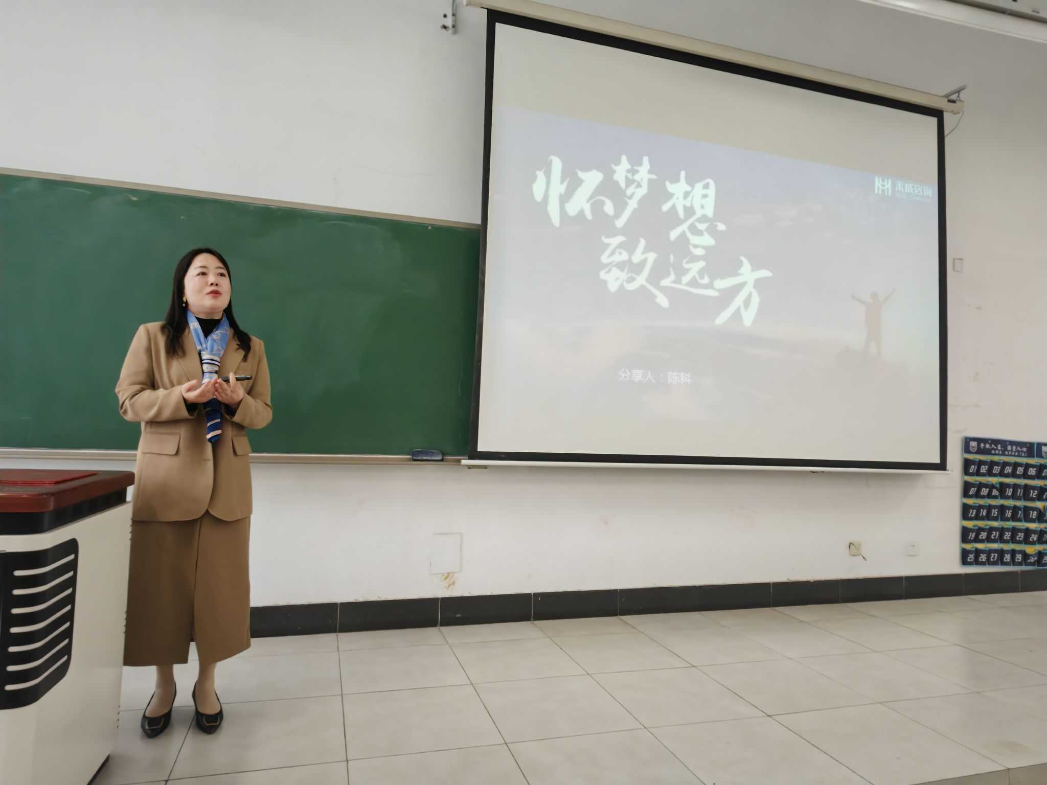 4月12号下午,禾成咨询总经理、员工陈科女士在厚学楼202室开展职业生涯规划讲座。公司党委副书记岳克勤,工商管理系教师吴琨、刘新艳、夏后学,工商管理专业在校生参加活动。